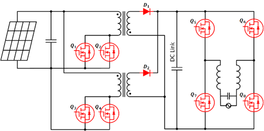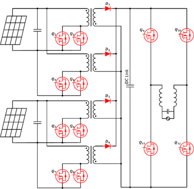 微型逆變器主要應(yīng)用在300 ~3000W的的光伏并網(wǎng)系統(tǒng)中,通常微型逆變器的數(shù)量與光伏組件數(shù)量相同,每一組件的交直流變換和最大功率跟蹤功能單獨(dú)進(jìn)行,當(dāng)某塊電池板損壞或被遮擋的情況下,不影響其他逆變器的正常工作,可即插即用,能夠根據(jù)用于需求進(jìn)行安裝擴(kuò)展。