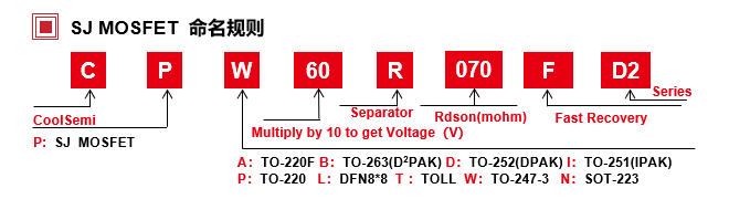 CoolSemi SJ產(chǎn)品采用先進的超結(jié)技術(shù)和優(yōu)化的設(shè)計結(jié)構(gòu),極低特征導(dǎo)通電阻(Rdson*A)優(yōu)于Infineon C6系列,有效提升開關(guān)電源的效率及功率密度。